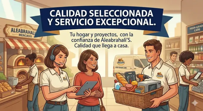 En Aleabrahali’S, la calidad no es una opción, sino nuestra razón de ser. Seleccionamos cuidadosamente cada artículo de nuestro catálogo, desde materiales de construcción hasta alimentos frescos, asegurándonos de que solo lo mejor llegue a tus manos. Para nosotros, la excelencia significa ofrecer productos duraderos y confiables que faciliten tus proyectos y mejoren tu día a día, respaldados por un criterio de selección riguroso y honesto.